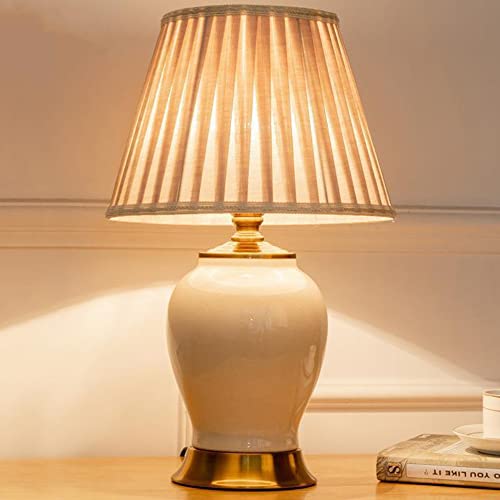 Lampe de Chevet LED E27 Blanc Tissu Abat-jour Céramique