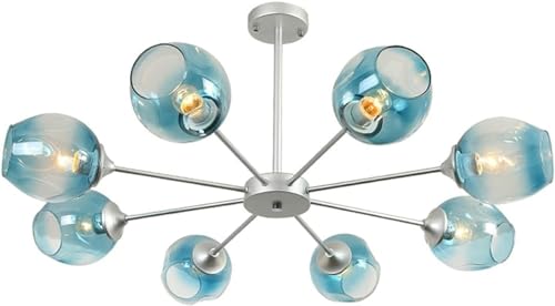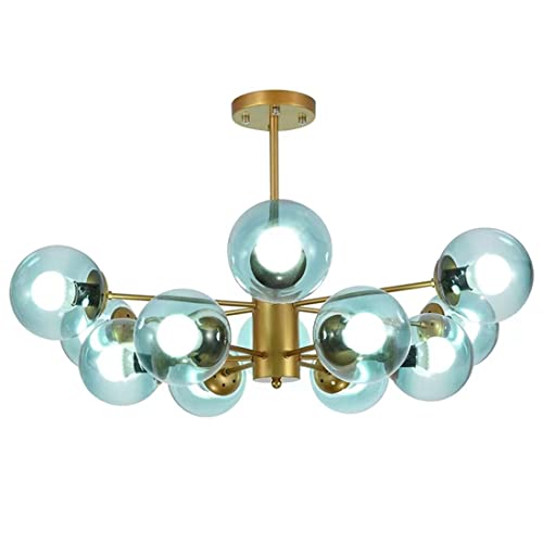 Lustre moderne, éclairage doré, 12 lumières, abat-jour bleu,...
