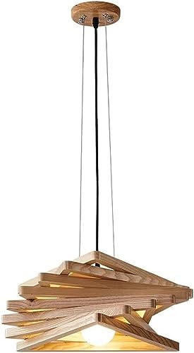 Lustre abat-jour bois géométrique, cadre bois, suspension bo...