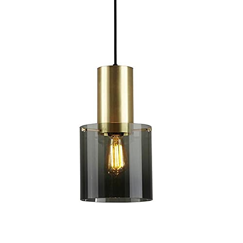 Luminaire suspendu industriel Mini, abat-jour verre gris, pl...