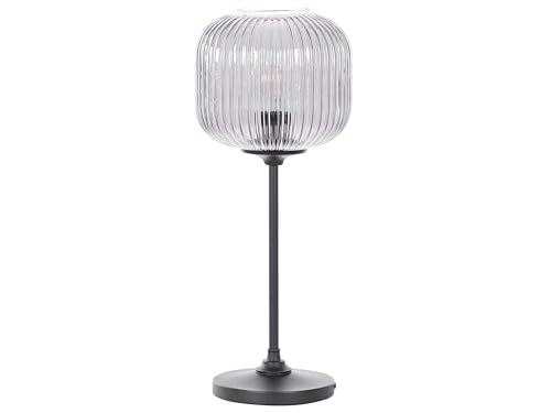 Lampe à Poser Noire Grise Fer et Verre 50cm Abat-Jour Globe