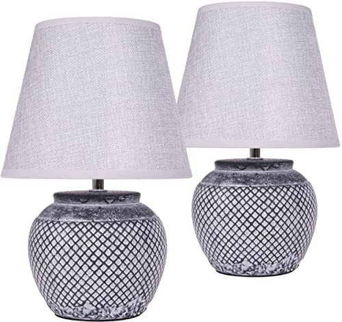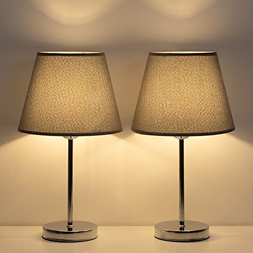 Lot de 2 lampes de chevet en tissu gris avec abat-jour métal