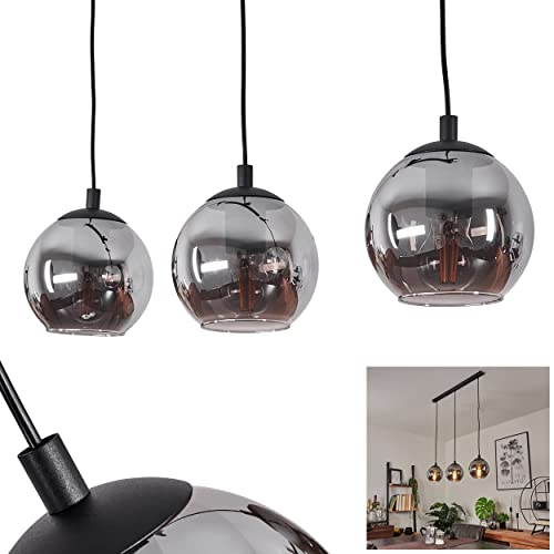 Suspension Sernf, lampe à suspendre métal/verre noir, hauteu...