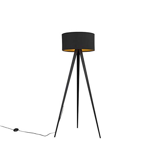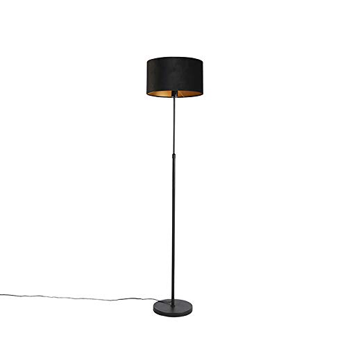 Qazqa Lampadaire Abat-Jour Noir et Or 1720mm