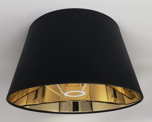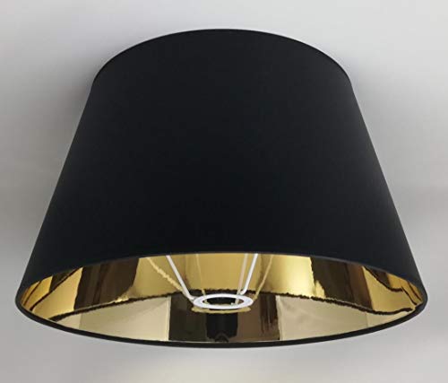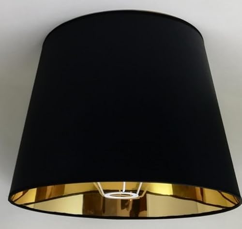 40 cm Cône Abat-jour Noir Doublure Dorée, Fait Main