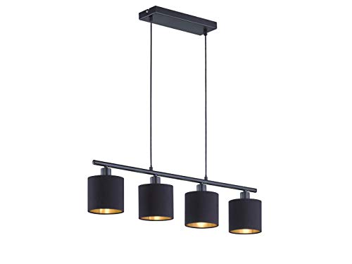 Suspension à 4 ampoules, abat-jour noir/doré, 75cm