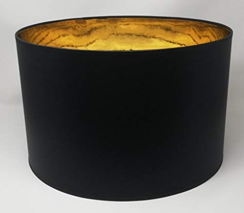 Abat-jour Tambour 40cm, Tissu Noir Doublure Dorée