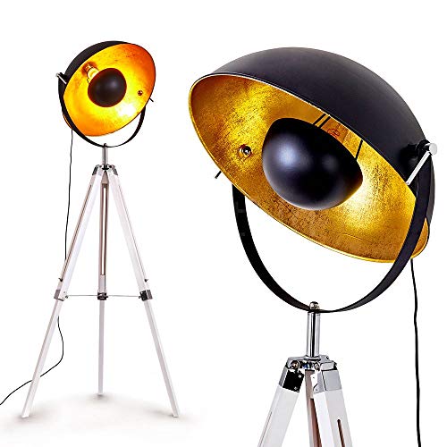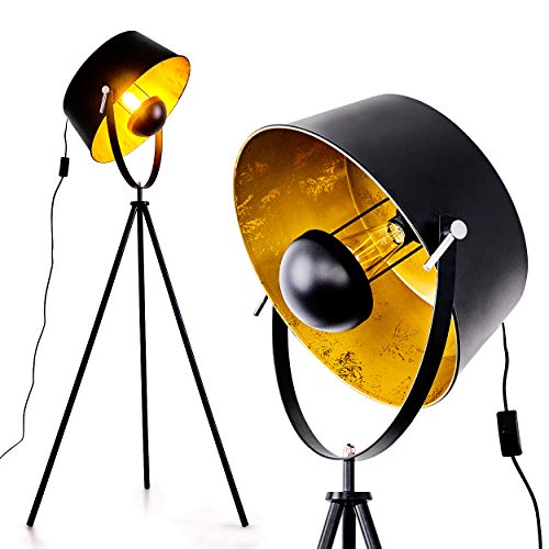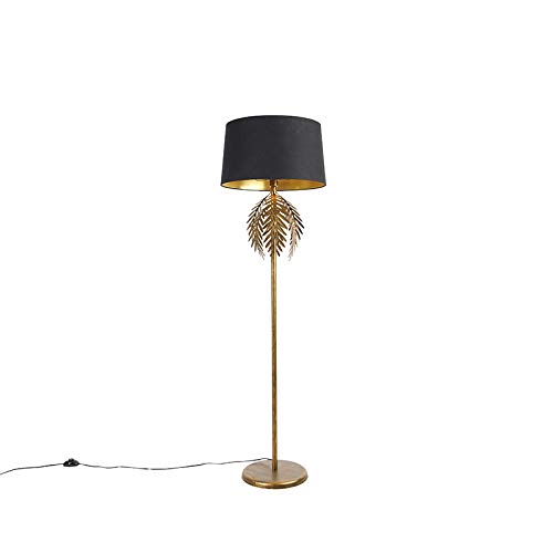 QAZ botanica Lampadaire Abat-Jour Noir et Or 168cm
