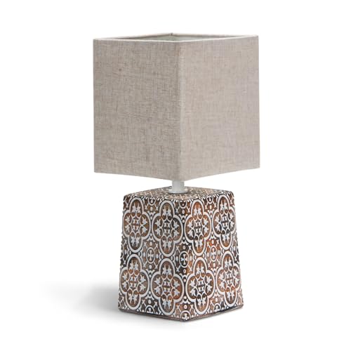 Lampe de Chevet en Céramique Marron avec Abat-Jour Tissu Mar...