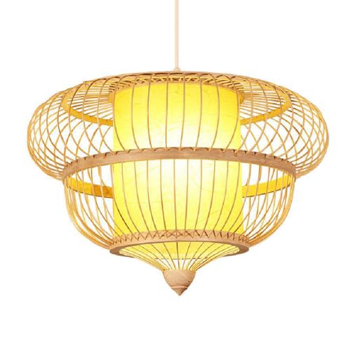 Forme cage bambou abat-jour grande lampe plafond faux parche...