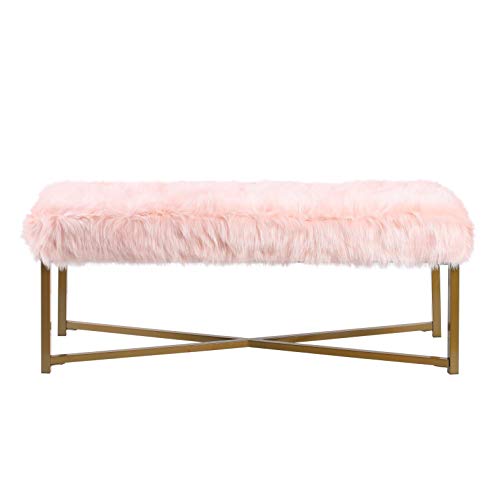 Banc rectangulaire rose faux fourrure