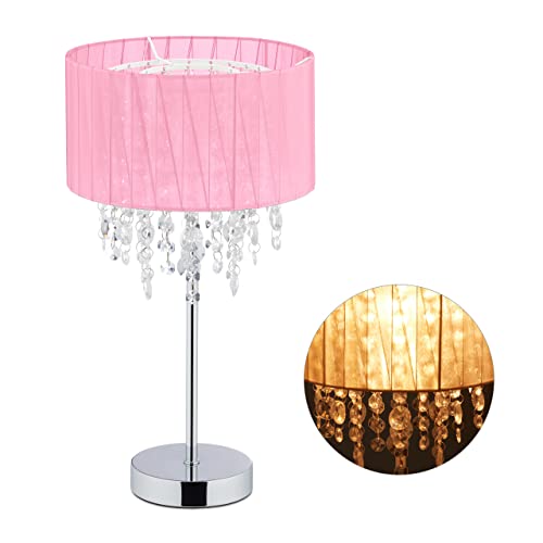 Relaxdays Organza Abat-Jour Lampe de Chevet Rose/Argenté