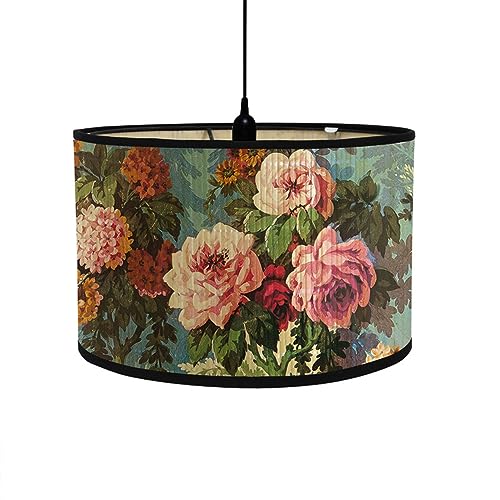 Morbuy Abat-Jour Bambou Vintage Imprimé Rose, 30cm, Tambour...