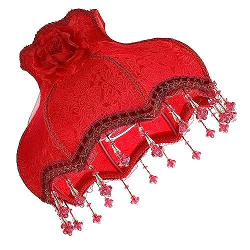 Abat-Jour 3 Pièces E14 Rouge Bord Dentelle Lustre Décoration