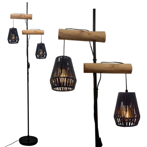 Lampadaire Boho Osasy 2 abat-jour E27, osier-rope métal