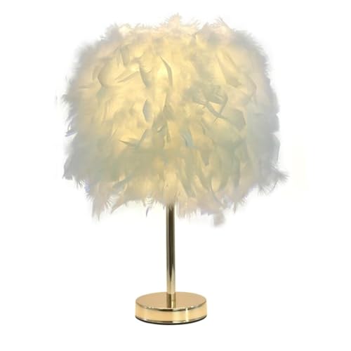 Lampe de table en plumes blanches Lampe de chevet avec abat-...