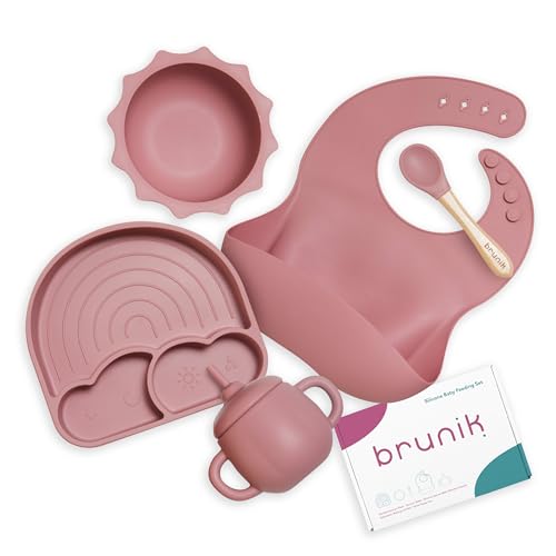 Brunik Vaisselle bébé silicone assiette à ventouse compartim...