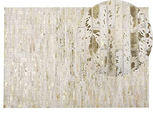 Patchwork Tapis 140x200 cm Cuir Vache Beige Doré Accessoire...