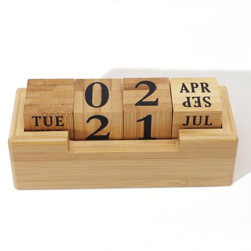 Realand Calendrier perpétuel en bois pour bureau, blocs d''a...