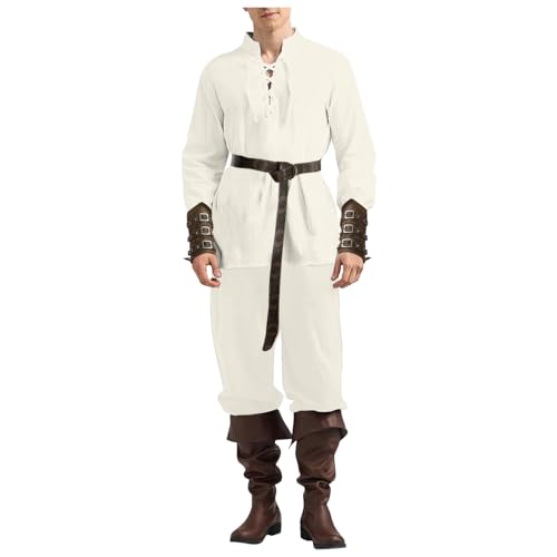 Costume Viking Beige Lin Pantalon et Accessoires Ensemble 4...