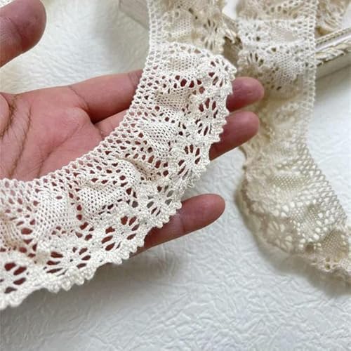 Tissu en dentelle extensible au crochet en coton beige, acce...