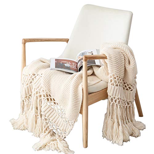 Paopaoldm Couverture tricotée avec pompons creux, lit climat...