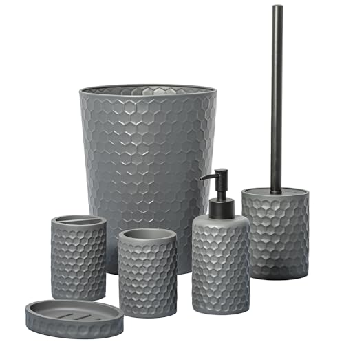 Ensemble d'accessoires salle de bain gris 6 pièces