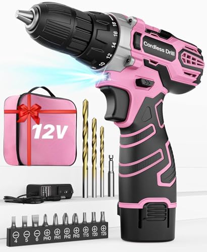 Perceuse Viseuse 12V Rose, 25Nm, Sac de Rangement, Accessoir...