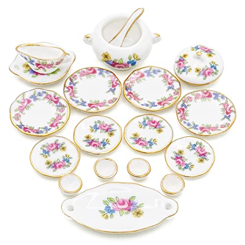 Odoria Miniature 17Pcs Accessoire Maison de Poupée Rose