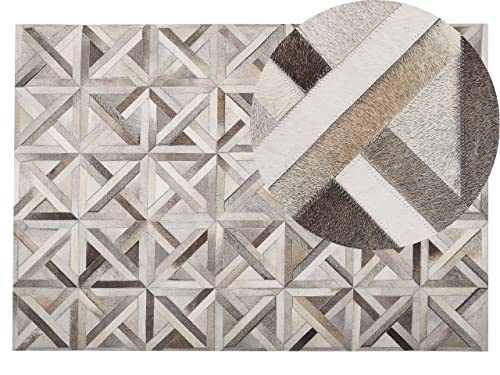Tapis patchwork design en cuir naturel, motif géométrique ac...