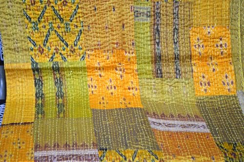 Marusthali Kantha Couvre-lit Indien Soie Patchwork Vintage P...