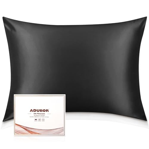 Adubor Taie d'oreiller mûrier soie, 23 mommes, Noir Queen