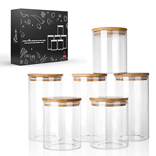 Lot de 6 pots épices hermétiques en bambou et verre borosili...