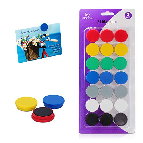 21 aimants blancs en 7 couleurs pour tableaux magnétiques