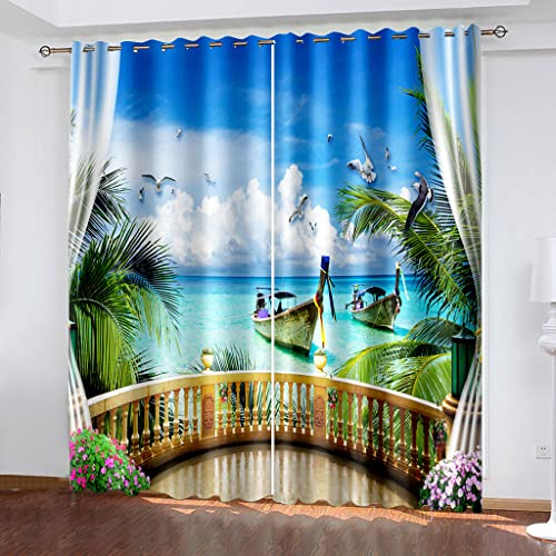 2 Pièces Rideaux Et Draperies Intérieurs 3D Vue sur Le Jardi...