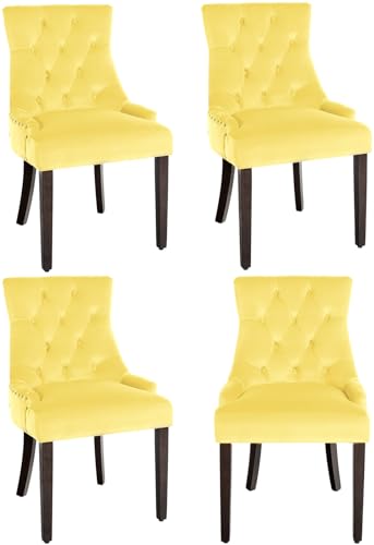 CLP 4 Chaises Salle A Manger Velours Jaune