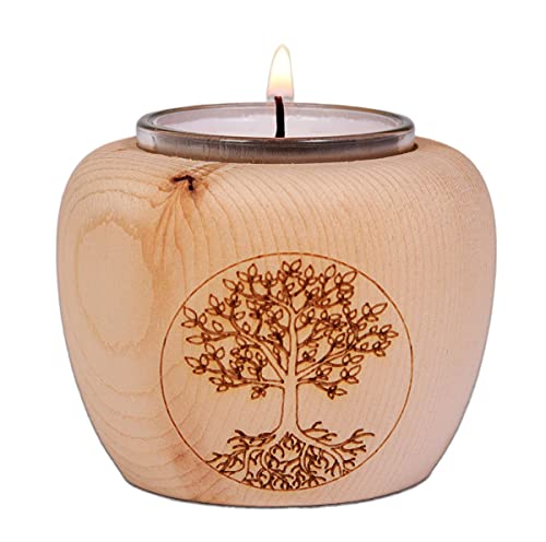 Photophore Mia en bois de pin - Avec arbre de vie - Motif la...