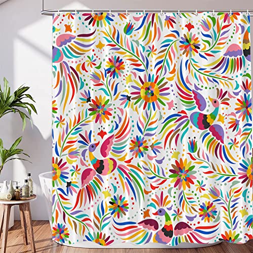 Ensemble Rideau de Douche Floral Mexicain Vert Polyester Imp...