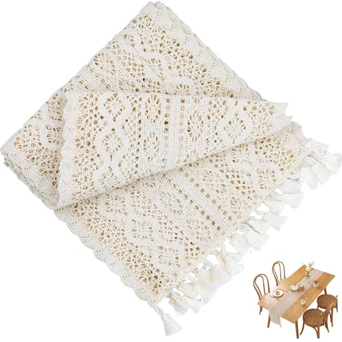 Macramé Chemin Vintage Beige, Décoration de Table à Manger