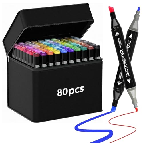 80 Colors Marqueurs Alcool, Marqueurs Croquis Double Pointe,...