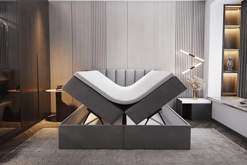Adulte 140x200 cm Rangement Matelas Ressorts Velours Gris
