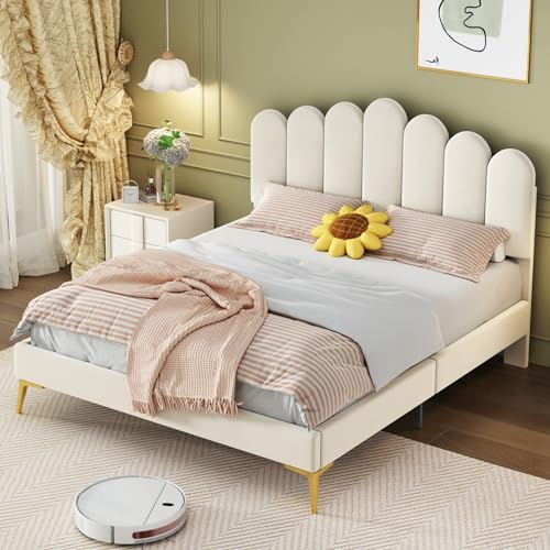 GOODFINDS Lit Double 140x200, Tête de Lit Ajustable, Velours...