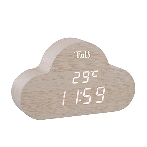 T’NB Réveil Numérique Nuage en Bois avec LED, Réveil Multifo...