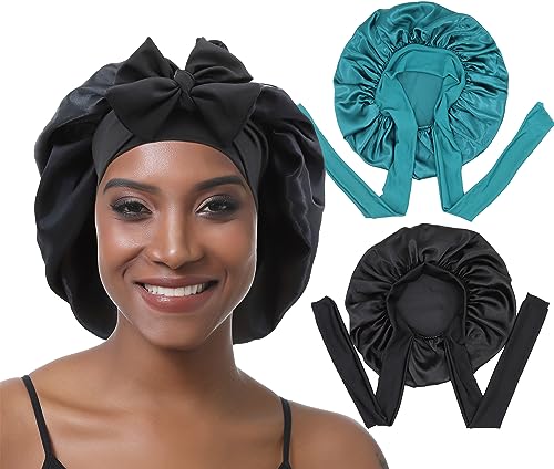 EBONNT 2Pcs Bonnet Satin Cheveux Nuit Bonnet en Soie pour Fe...