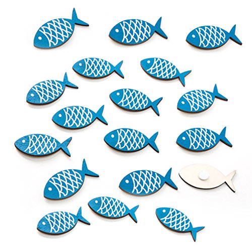Logbuch-Verlag 18 poissons bois bleu blanc 5x3cm