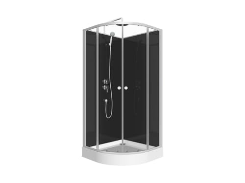 Vente-cabine-douche-quart-de-cercle-chrome-noir-L90x90xH213/...