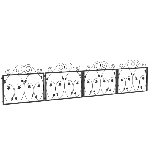 Outsunny 4 clôtures de jardin décoratives métal ornées, ajus...