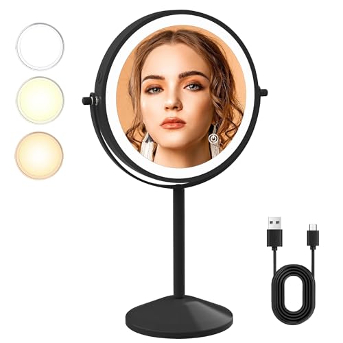 Grossissant Noir Miroir Double Face LED Rechargeable 1X/10X...