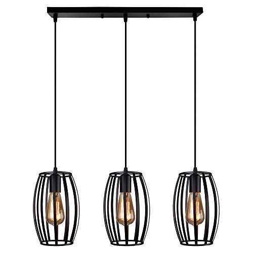 Luminaire Suspension Industriel Noir 3 Lampes Corde Ajustabl...
