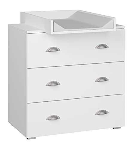 Klups Commode à Langer 3 tiroirs Plan amovible Blanc/Bois